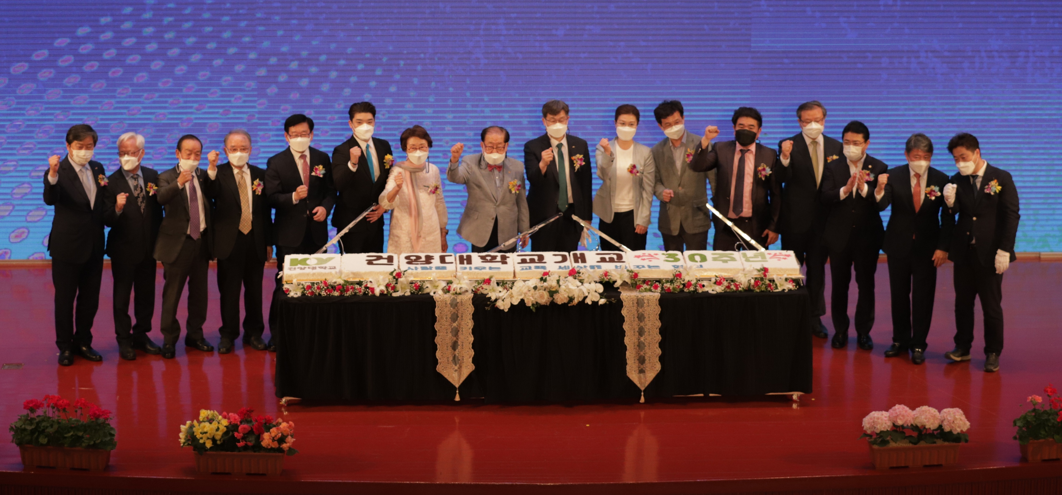 이날 열린 30주년 기념식 행사는 코로나19 확산 방지를 위해 생활 속 거리두기와 마스크 착용을 준수한 가운데 창학 30주년 기념영상 상영과 내외빈의 축사, 명곡상 등 각종 대학 공로자 수상, 대학 비전선포 등으로 진행됐다.