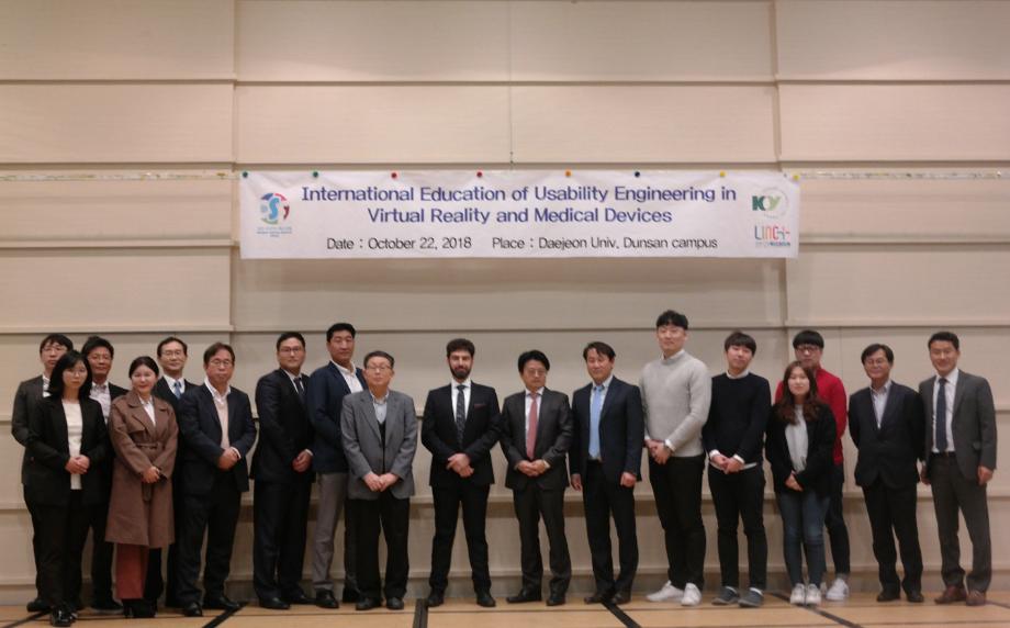 초청강사로 내한한 독일 Fraunhofer FIT의 Erion박사는 EU Usability 사용현황에 대한 발표를 통해 한국형 VR 및 의료기기분야의 Usability 교육모형의 필요성에 대해 강의했으며, 건양대학교 글로벌 산학협력센터(독일 하겐 소재)와의 협의를 통해 한국형 교육모델개발에 필요한 연구원 교류 및 자료 제공에 대해 실무적으로 협력키로 했다.