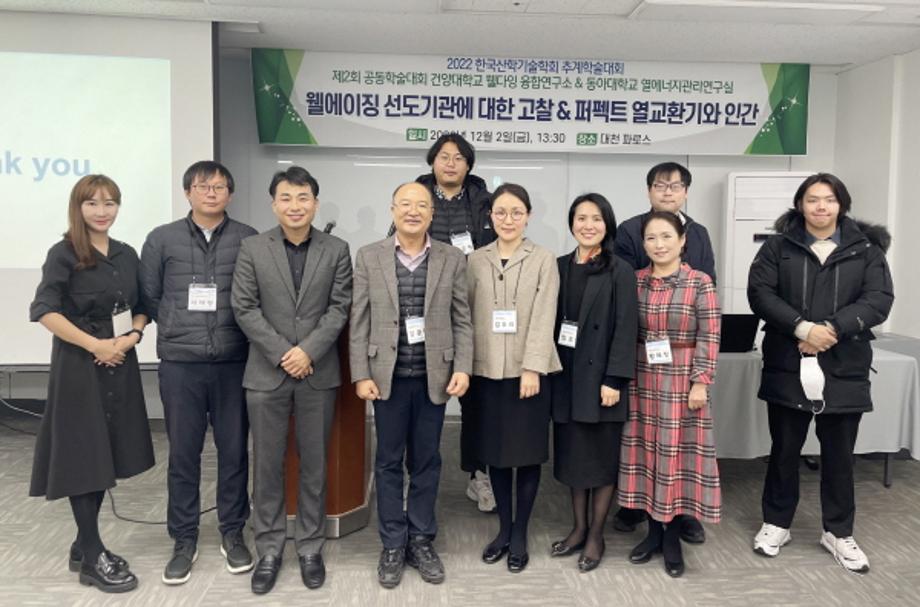 건양대학교(총장 김용하) 웰다잉 융합연구소(소장 김광환)와 동아대학교 열에너지관리연구실은 지난 2일 대천 한화리조트에서 열린 ‘2022 한국산학기술학회 추계학술대회’에서 <웰에이징 선도기관에 대한 고찰&퍼펙트 열교환기와 인간>이라는 주제로 제2회 공동 학술대회를 진행했다고 밝혔다.