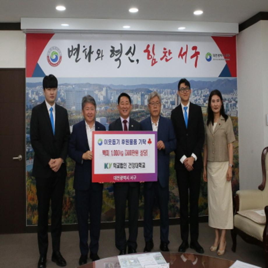 이번에 건양대가 기탁한 쌀은 지난 5월 열린 대학 축제인 한솔대동제를 통해 얻은 수익금을 통해 마련했으며 지역사회 어려운 분들을 위해 쓰고자 서구청에 기부하게 됐다.