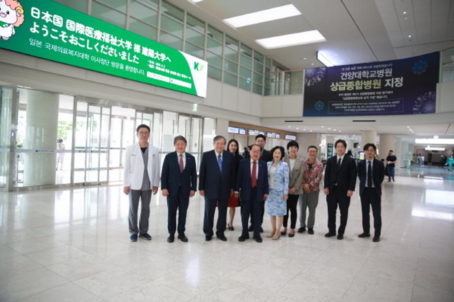 건양대학교(총장 김용하)는 5일 오후 일본 국제의료복지대학 이사장단이 대전 메디컬캠퍼스를 방문해 병원 및 대학 캠퍼스를 돌아보고 양교 간 협력을 강화하는 협의를 진행했다고 밝혔다.