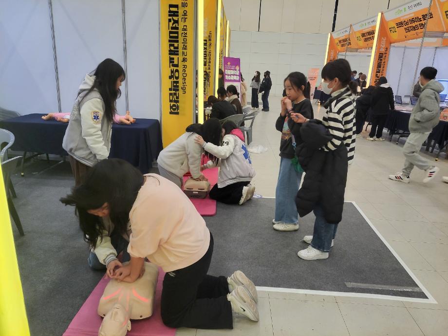 건양대 응급구조학과 ‘2024 대전미래교육박람회’ 심폐소생술 및 자동심장충격기(AED) 체험활동 건양대학교(총장 김용하) 응급구조학과(학과장 박정희)가 대전교육청 주최로 19일부터 21일까지 대전컨벤션센터에서 진행되는 ‘2024 대전미래교육박람회;에 참여해 대전시 초·중·고 학생과 학부모, 선생님을 대상으로 성인 및 영아 심폐소생술과 자동심장충격기(AED) 체험부스를 운영했다. 건양대 응급구조학과 김철태 교수는 “이번 체험부스를 통하여 학생들에게 예고 없이 갑자기 일어날 수 있는 심정지 상황에 대한 대처법과 심폐소생술의 중요성을 인지시켜 안전에 대한 학생들의 인식을 높이고 더 나아가 지역사회 안전 문화 확산을 위한 계기가 됐길 바란다”고 밝혔다. 이번 부스운영에 참여한 응급구조학과 1학년 류현우 학생은 “수업 때 배운 내용을 내가 직접 다른 사람에게 교육하면서 배운 것도 많고, ‘직접 체험을 해보니 실제 상황에서도 사람을 살릴 수 있을 것 같다’는 말을 들어 큰 보람을 느꼈다”고 말했다. 건양대 응급구조학과는 전국 응급구조학과 중 유일하게 자대병원인 건양대학교병원(상급종합병원)에서 세분화된 전공과별로 임상실습을 진행하고 있으며, 미국심장협회(AHA) BLS, 대한심폐소생협회(KACPR) KALS, KBLS, 국제응급구조사협회(NAEMT) 병원 전 외상소생술(PHTLS) 전문 교육기관으로 지정받아 병원 전 전문적인 응급처치 능력을 갖춘 인재를 양성하고 배출하고 있다. |