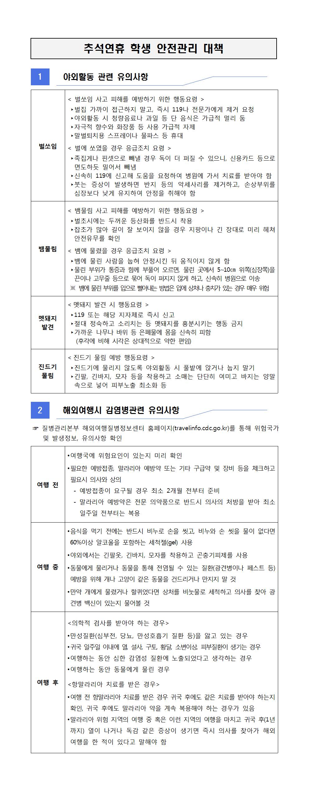 [관련근거 : 교육부 학교안전총괄과-5274 추석연휴 학생 안전관리 대책 수립 및 시행 협조요청 (2019.8.20)