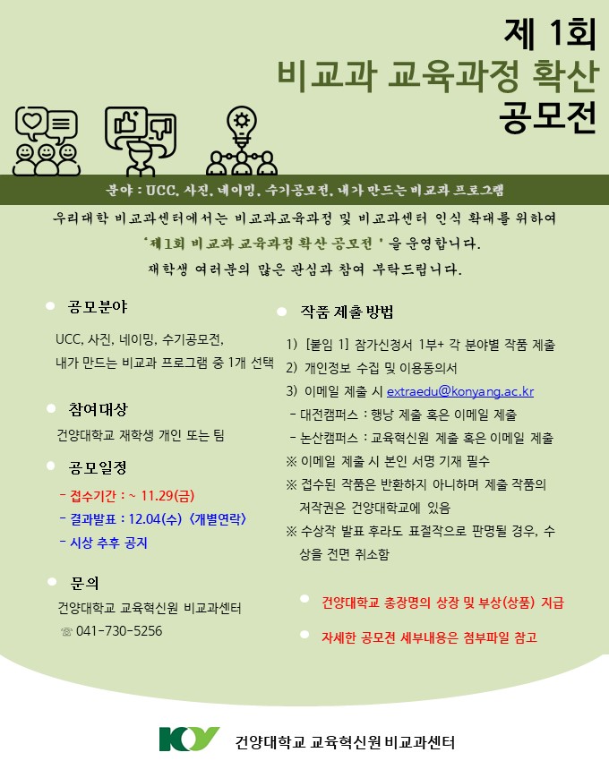 | 제목 | [접수기간 연장] 비교과 교육과정 확산 공모전 안내 | ||||