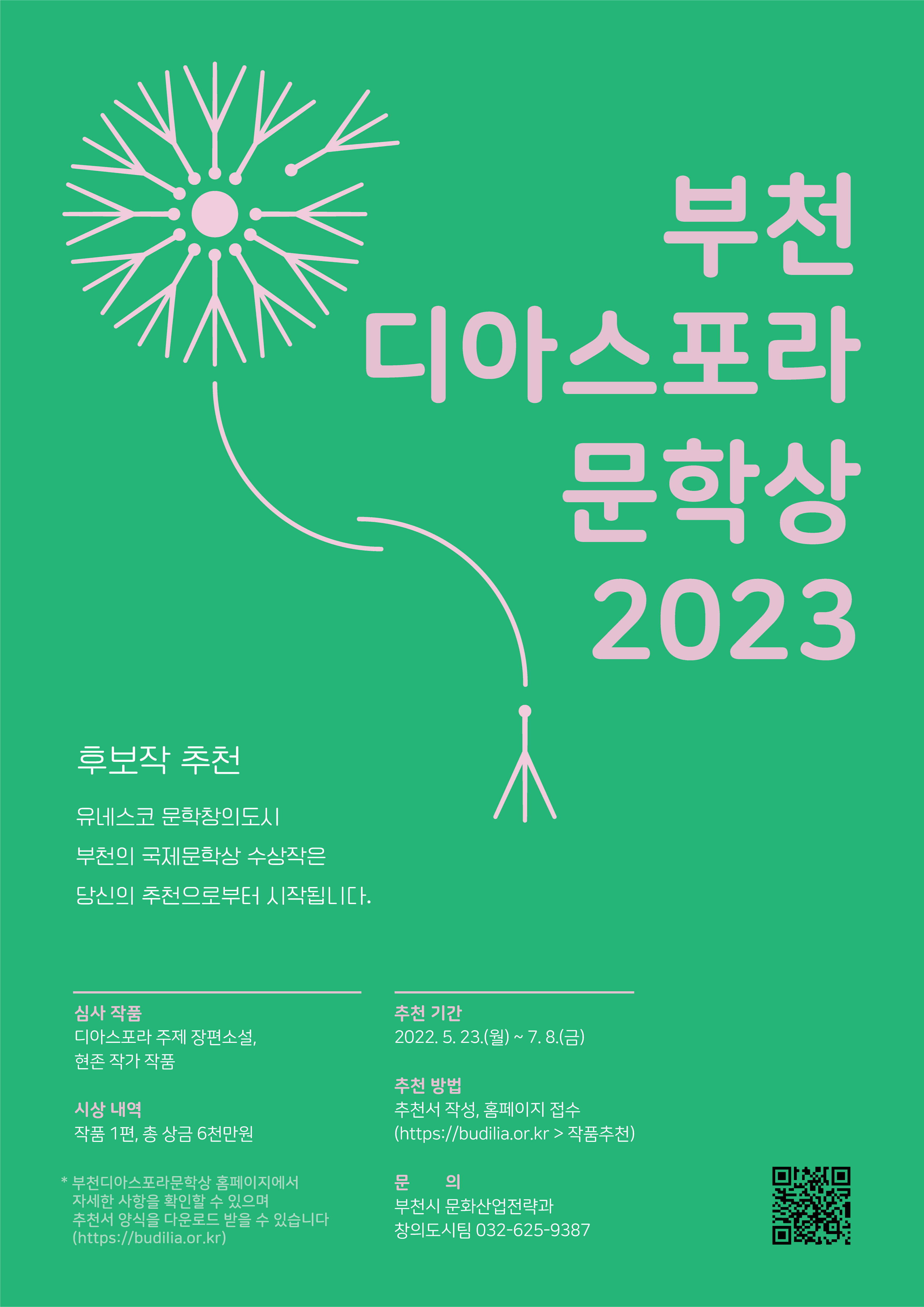 | 제목 | 부천 디아스포라 문학상 후보작 추천 공고 알림 | ||||